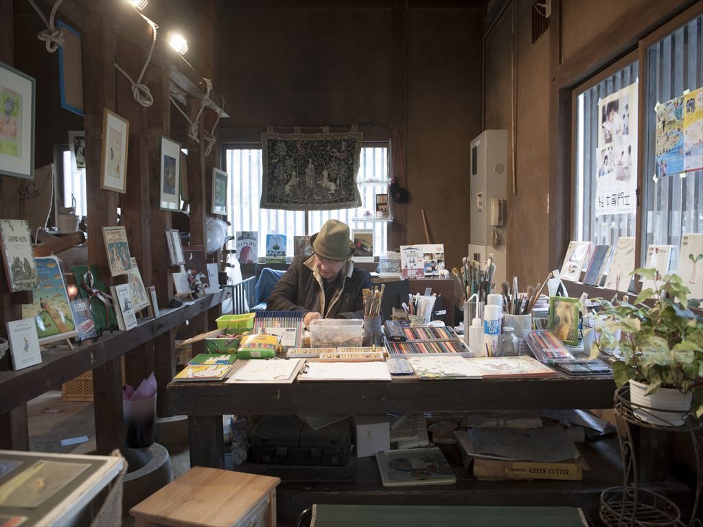 工房では作品や絵本の販売のほか、お絵かき体験や、絵本製作、また、絵画教室やデッサン講座なども行っていて、大人も子供も楽しめる施設です。