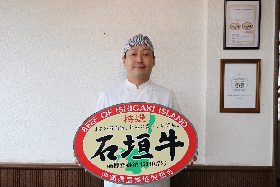 「ステーキ&レストラン パポイヤ」は、一樹さんの父であるオーナーシェフ・小澤康栄さんが約30年前にオープン。まだ石垣牛という名が知られていない当時、「島の末端からおいしい石垣牛を広めていこう」という島の人々の想いに応え、石垣牛を提供することになったそうです。