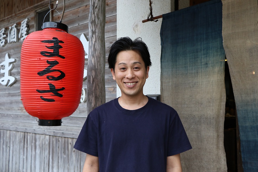 満面の笑顔が素敵な店長・上盛(うえもり)さん。「バラエティ豊かな品々を用意して待っています。地元出身のスタッフに、島の魚の名前や味の特徴などを気軽に聞いてくださいね」と話します。