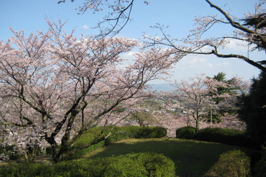 3月下旬から4月上旬にかけてはソメイヨシノやヤエザクラ、ヤマザクラなど約170本の桜が見ごろを迎え、遠くからでも山肌が白くかすむほど綺麗に咲いてみられます。山道の桜となりますので、なるべく歩きやすい靴で行くのがお勧めです。公園脇の道路は桜並木になっており、公園内には桜広場もありお弁当を持ってのお花見にもぴったり。