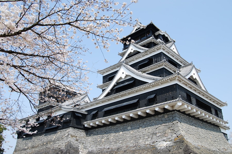 こちらでは、桜の馬場城彩苑や二の丸広場など、熊本城周辺から桜を楽しむことができます。熊本城公園では、ソメイヨシノ、ヤマザクラ、ヒゴザクラなど約800本の桜が観賞でき、桜の季節は日没から23時までライトアップされた熊本城と夜桜が幻想的な雰囲気で、昼間とは違った桜を楽しむことができます。