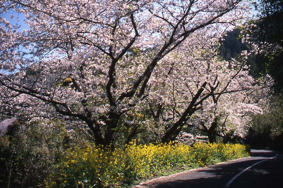 さくらの名所100選にも選ばれている湯の児チェリーライン(水俣市チェリーライン)は、湯の児温泉近くの不知火海に面した道沿いの約5kmにわたり、ソメイヨシノ約500本の桜並木を楽しめる熊本でも人気のお花見スポットです。桜ロードをドライブやウォーキング、サイクリングで潮風を感じるのにもぴったり。