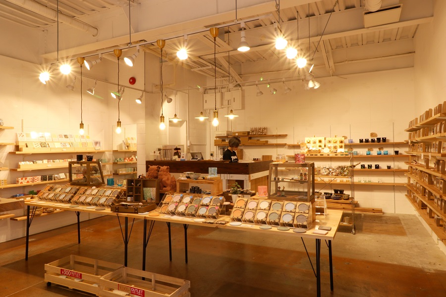 昔ながらの“赤瓦”のイメージが変わるような、モダンでおしゃれな直営店。店内では「新垣瓦工場」の赤瓦シリーズのほか、県内作家が手がけた雑貨を購入することもできます。