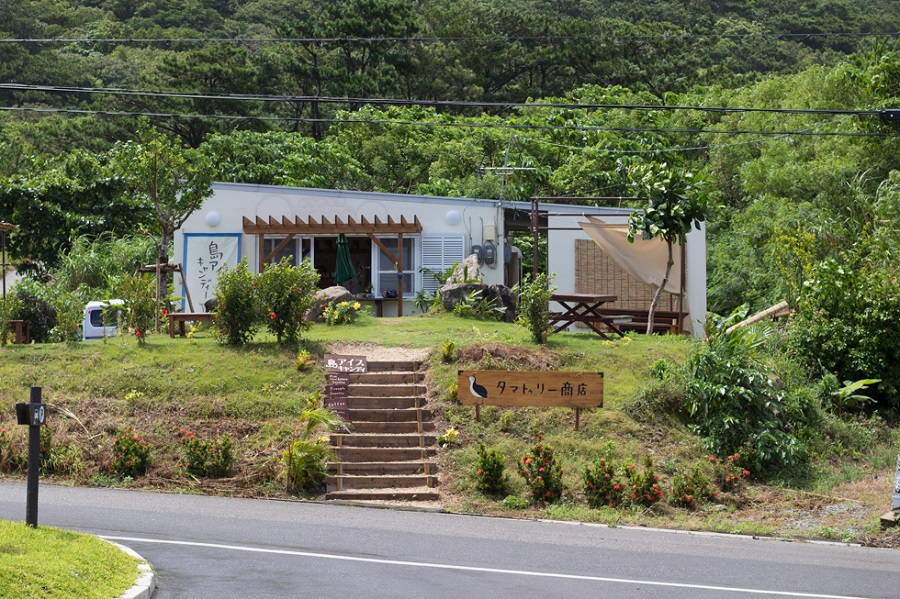 石垣島の玉取崎展望台へ行く途中に見えてくるのが「ぱいぬしま氷菓 タマトゥリー商店」。かわいらしいシロハラクイナのイラストが描かれた看板が目印です。