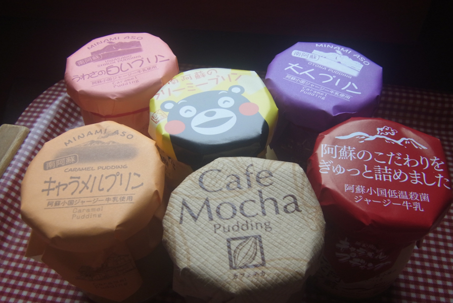 - 「キャラメルプディング」はユニークなネーミングと可愛らしいパッケージのプリンを販売している専門店です。乳脂肪分が高くて濃い阿蘇小国ジャージー牛乳、平飼いで育てられた鶏が産んだ地卵を使用した「南阿蘇こだわりプリン」はミルク感が強くてなめらか。国道沿いの分かりやすい場所にあるので、土産にもぴったりですよ。