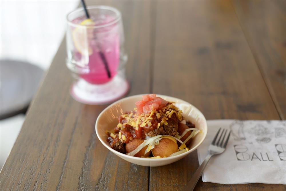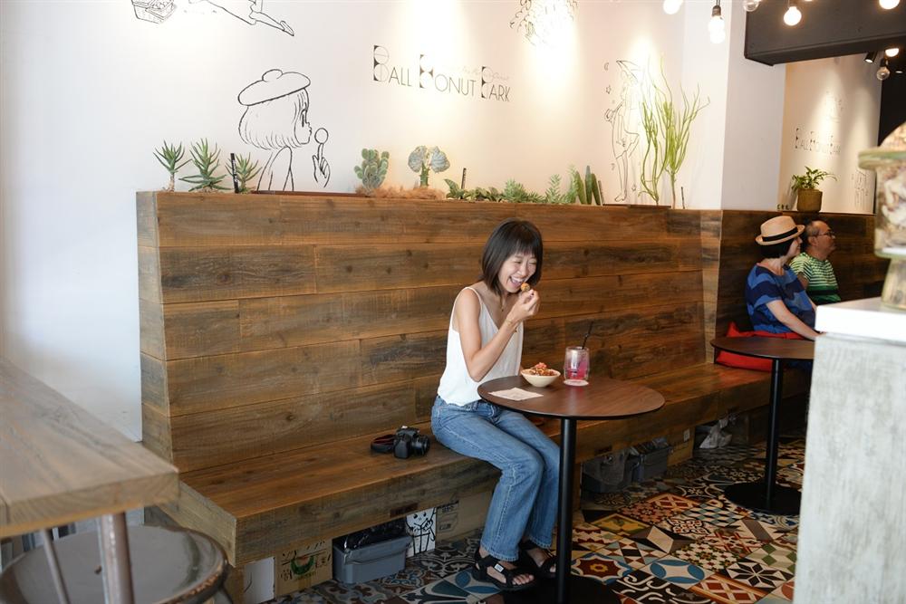 ここは、沖縄初のまんまるドーナツを味わえるお店。床のカラフルなタイルや、無造作にディスプレイされた電球がフォトジェニックで、何より、もちもちのドーナツが美味しいと人気です。ここで散策前に少し腹ごしらえをしましょう。