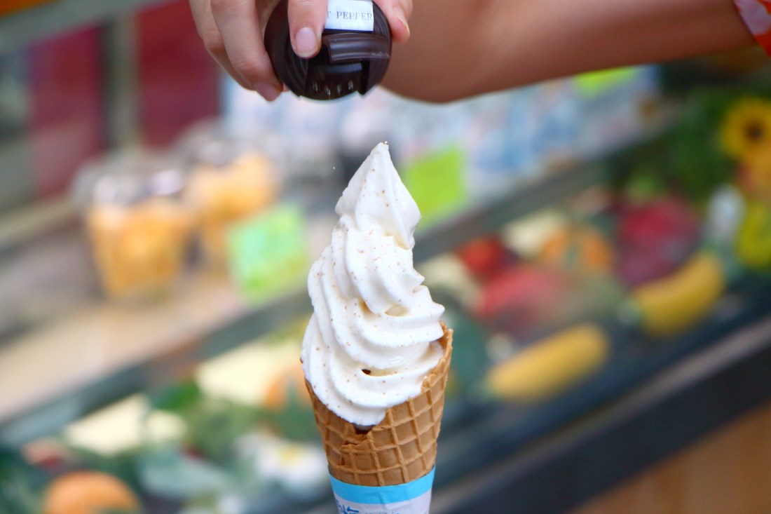 とうがらし塩の爽やかな刺激が、ほんのり甘じょっぱい雪塩ソフトクリームの味わいを引き立てて意外にもベストマッチ。トッピング塩は、約10種あり、いろいろな味が楽しめます。