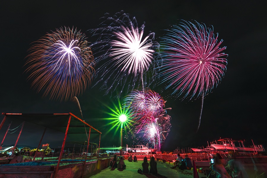 平成27年(2015)から始まった入場無料の花火大会。第4回目となった昨年(2018)のイベントでは、ムーンビーチ特設会場にて開催され訪れた多くの人たちを魅了しました。