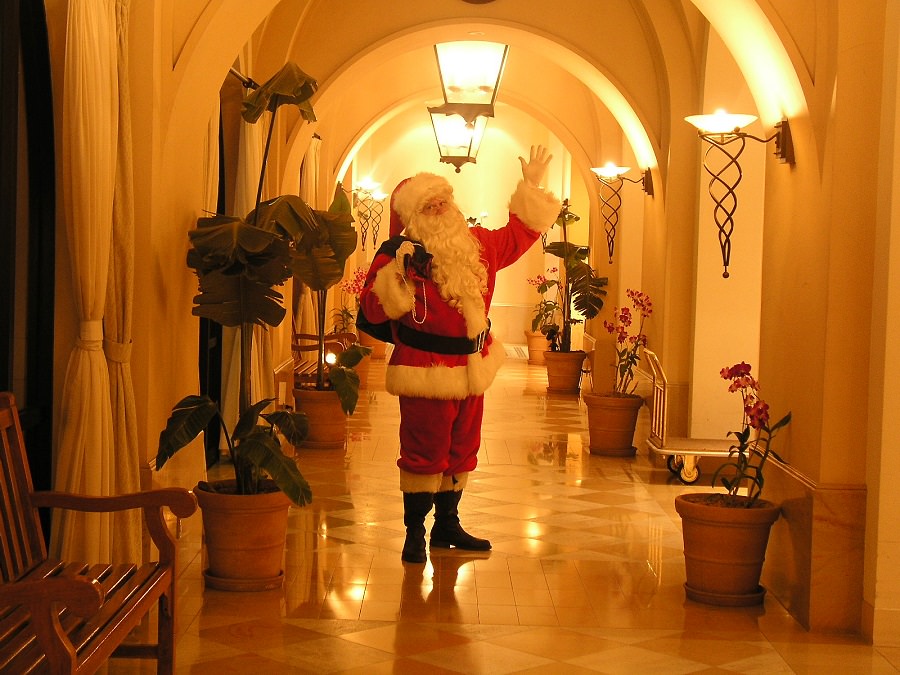 館内をお散歩中の陽気なサンタと握手や記念撮影ができる。