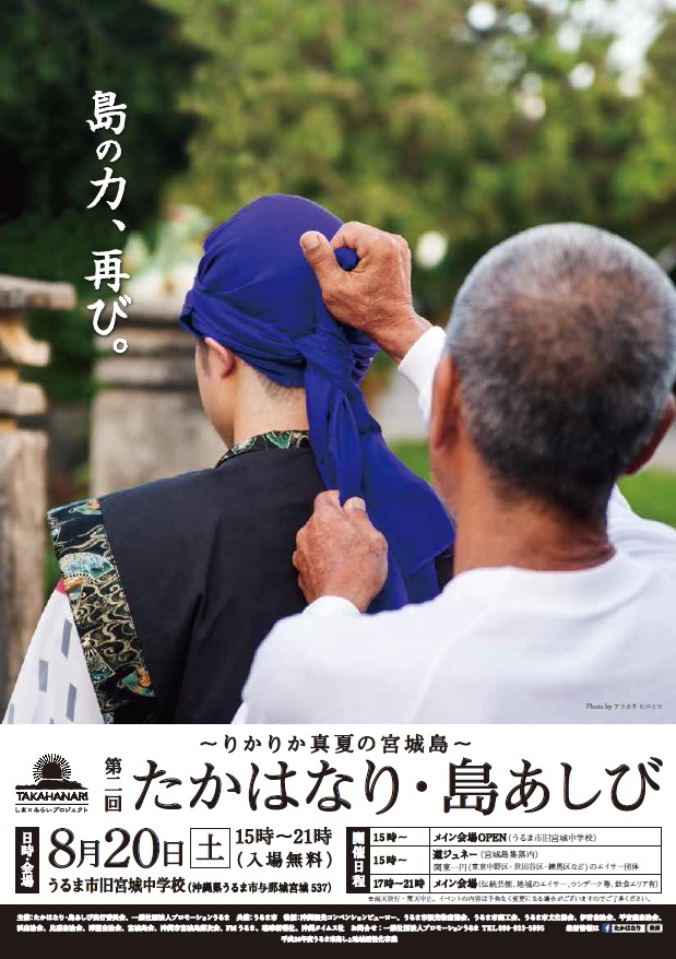 2016年8月20日(土)、沖縄県中部のうるま市から橋を渡って行くことができる離島・宮城島で「第2回 たかはなり島あしび ~りかりか真夏の宮城島~」が開催される。