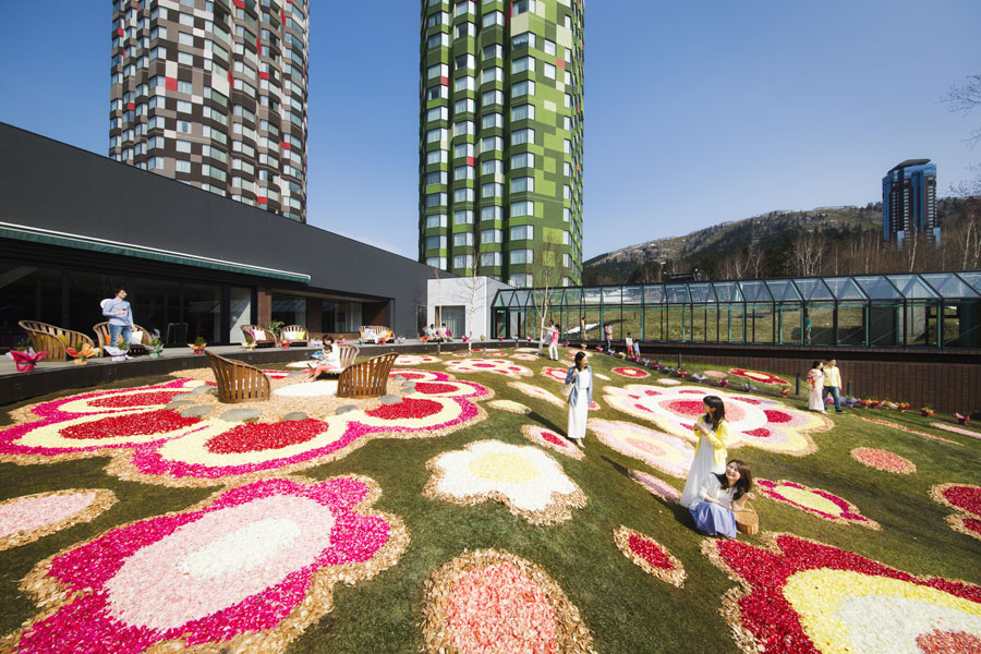 今年初開催となる「花咲くトマム」は、トマム「ザ・タワー」の各所で花に関するさまざまな催しが実施され、待ちかねた北海道の春の訪れを楽しめる。
