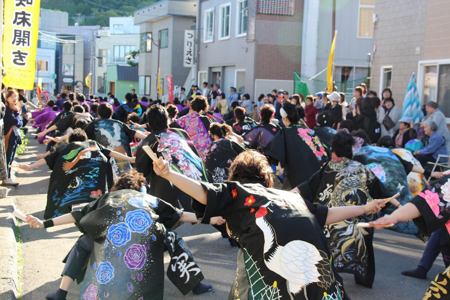 本祭は6月19日(日)だ。非常に多くの羅臼町民が参加し、市街地を「羅臼音頭」で踊り歩く「知床千人踊り」が見どころだ。世界的三味線奏者である「新田親子」による津軽三味線演奏会も実施される。