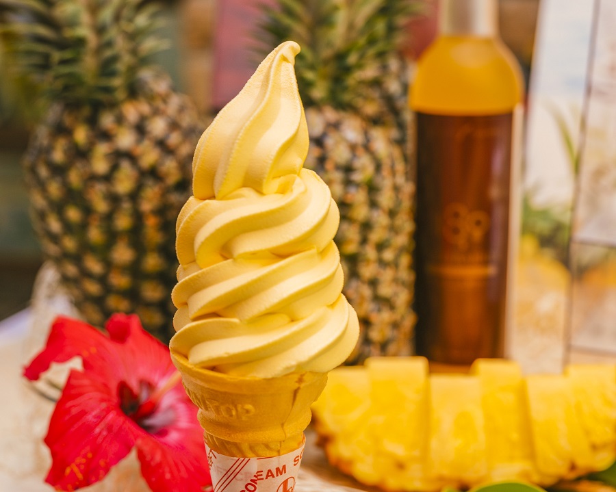 沖縄本島北部、やんばる産のパインアップル「ゴールドバレル」を使った「美ら島ゴールドパイン プレミアムソフト」が那覇市の首里城公園と本部町の海洋博公園で2019年6月1日(土)より新発売しました。