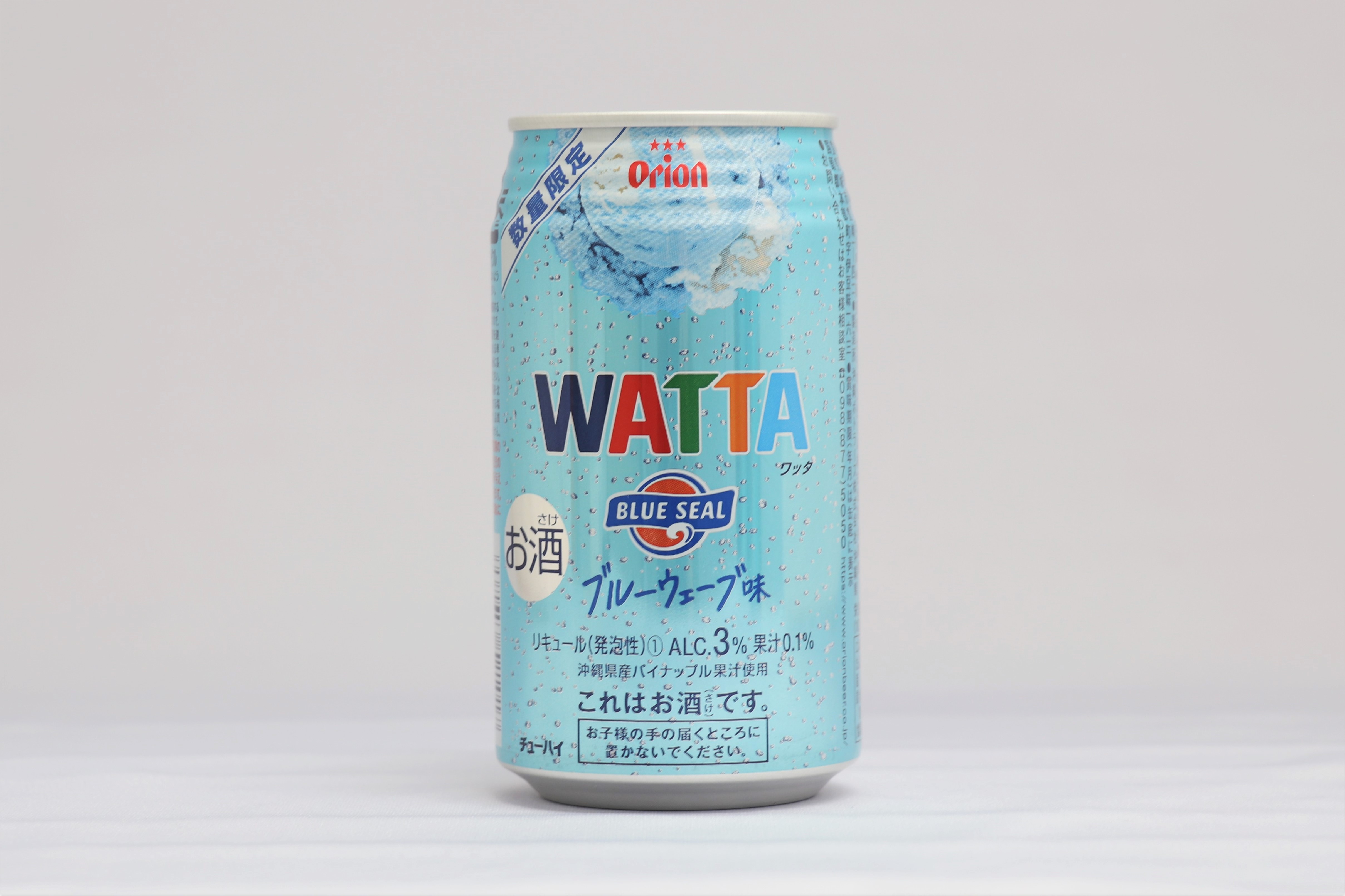 WATTA ブルーウェーブ味では沖縄県産パイナップル果汁を使用し、パイナップルとソーダの爽やかな味わいと、アイスクリームを感じさせるミルキーな口当たりを再現し、3%の低アルコール缶チューハイとして商品化しました。