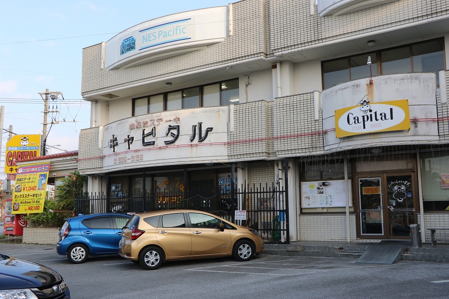 牛の看板が目印の「Capital(キャピタル)北谷店」。
