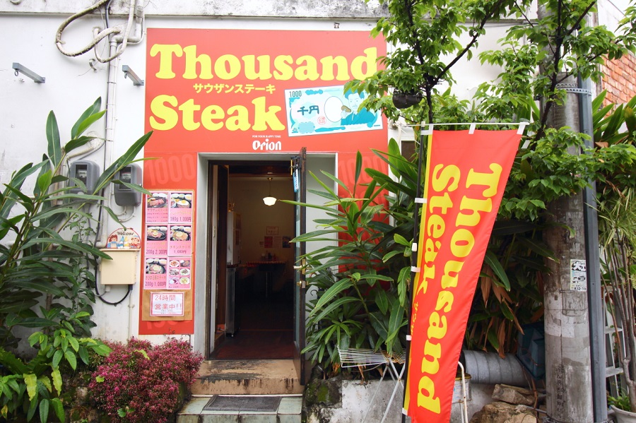 沖縄ステーキ激戦区の那覇市松山で、格安ステーキを提供する「サウザンステーキ」。店名と看板の通り、1000円札一枚で美味しいステーキが食べられるお店です。