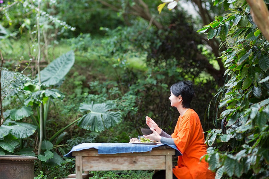 店の外で森に囲まれて食事するのも、水円ならではの楽しみ方。