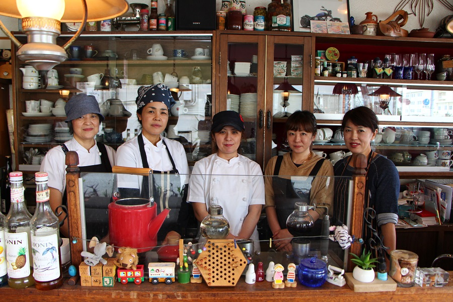 素敵な笑顔のスタッフは元気に働くママさんたちが活躍。初めての来店でも寛げる雰囲気で、「30分でも1時間でも、香りのいい美味しいコーヒーを飲みながらゆっくり過ごしてほしい」という、喫茶店を始めたときから変わらない想いでもてなしてくれます。
