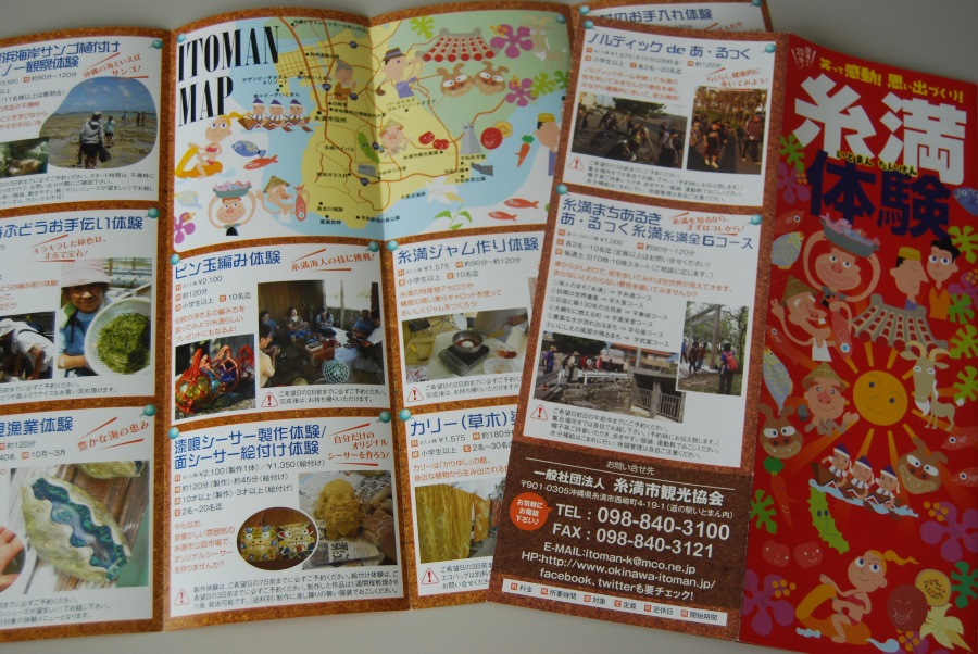 旅の情報を集めたいなら糸満市物産センター遊食来内にある糸満市観光協会の情報案内カウンターがおすすめです。「ここでは、沖縄旅行を充実させる様々な体験メニューを案内。海人(ウミンチュ:沖縄の方言で漁師の意味)のまちとして知られている糸満市ならではの海での体験もいろいろありますが、とくに人気なのは『ビン玉編み体験』です」と伊敷さん。ガラス製の浮き玉を縄で編むビン玉編み体験は、糸満海人の技を実際に体験できる楽しいプログラムです。そのほかにも糸満で採れた果物を利用したジャム作りや、ガジュマルやフクギ、ゲッキツといった沖縄の植物を使った草木染めの「カリー染め体験」も人気です。「観光客の方だけでなく、地元の方でも楽しめるまちあるき体験も楽しいですよ。バスや車に乗って観光するのではなく、ガイドさんと一緒にまちなかを歩き、ゆっくり流れる時間や人々の暮らしが醸し出す空気を感じられると思います」。1時間半から2時間かけて、実際にまちを歩き、地元の方たちと触れ合うことができたら、糸満がもっと好きになること請け合いですね。