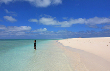 「西表島(いりおもてじま)のジャングルはとにかく圧巻。島の約90%が原生林に覆われ、八重山諸島の中で一番大自然を満喫できると思います」と興奮気味に話す達人。「初心者やファミリーでも安心の遊覧船での川下りや、カヤックやカヌーで秘境の滝を目指すアクティビティやトレッキングもあります。早朝限定のツアーや満天の星空を見るツアーなど、泊まりがけだとさらに楽しめます。イノシシ鍋も絶品ですよ」 西表島の南西にあり、日本最南端の有人島が波照間島(はてるまじま)だ。2月~6月にかけて南の水平線上に南十字星が見えます。島内には星空観測タワーがあって、夜は天体観測体験が行われています。「ニシハマという白い砂浜が有名です。海の向かいにはサンゴでできた小さな島があり、この景色を利用したウェディングも人気を呼んでいます」。 国立公園に指定されるほど貴重な自然が残る島々。訪れる際には島の人たちと同じように自然を大事にしたいですね。