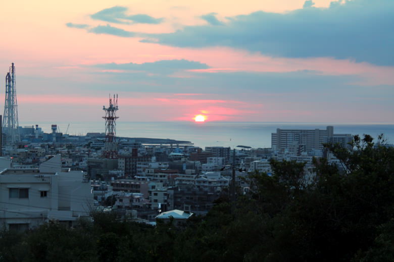 『眺めの良い外人住宅』コーナーで紹介した『20世紀ハイツ』のカフェスペースから見渡せる、東シナ海に沈む夕日はとても美しい。20時まで営業しているから、日没が遅い夏場でもお茶とスイーツを味わいながら、オレンジ色に染まる空と海の景色を堪能することができます。夕日だけでなく、店内に並ぶアンティーク雑貨も負けず劣らず美しい逸品ばかりなので、そちらのチェックも忘れずに♪