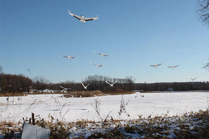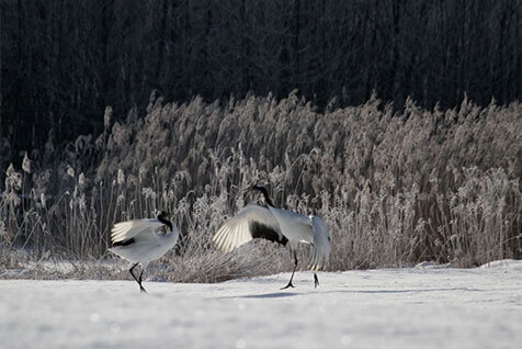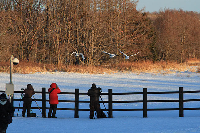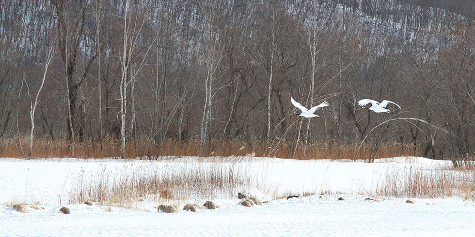 1952年、タンチョウは国の特別天然記念物に指定され、今なお北海道・道東地方で見ることができます。夏は湿原に入り、ヒナ鳥を育てるため、タンチョウを観察するのに最もおすすめの季節は冬。毎年、12月から2月には世界各国からタンチョウをはじめとした野鳥の愛好家が道東を訪れます。