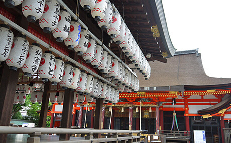 八坂神社の境内には30以上の社があり、多くのご利益を授かるということで初詣には多くの人が訪れます。大晦日の19時過ぎ頃から境内の灯篭に火がともされ、人々の願いを書いた「をけら木」とともに、元日の朝まで焚かれます。そして元日の午前5時から本殿で、をけら祭の神事が行われます。