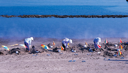 指宿温泉は砂むし風呂で有名な鹿児島県の温泉地です。海岸沿いの砂むし場では頭部を除く全身入浴ができ、他の温泉とは一味違う入浴体験ができます。