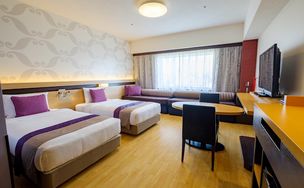 全客室18㎡以上でシングルは140cmのベッド。有線LAN・全館Wi-Fi(無料)も完備したホテル。
